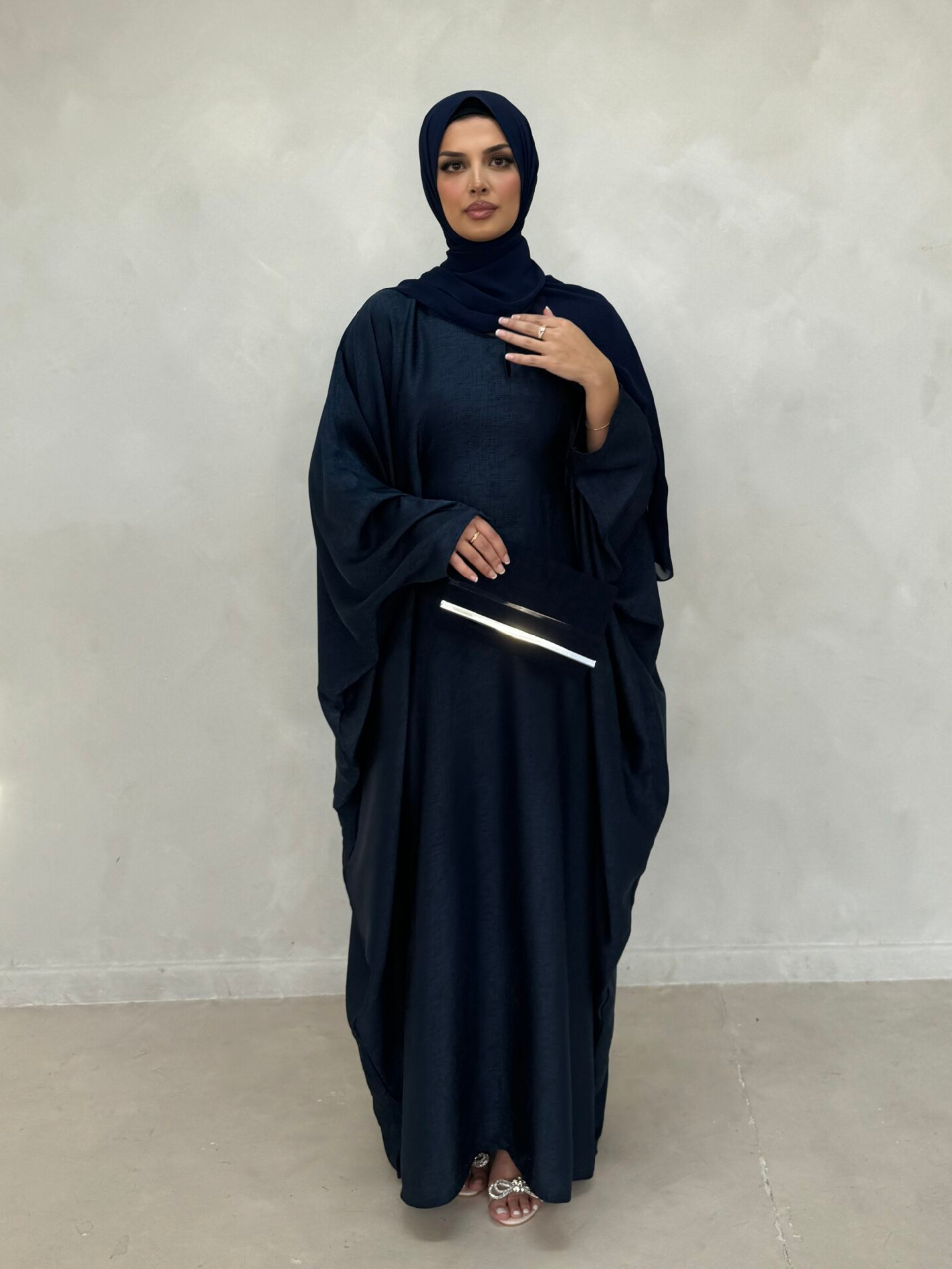 This 4-piece set includes a long sleeve inner slip that can be worn alone for a more casual vibe. Complete with a matching hijab and belt, this Abaya harmoniously blends tradition with a modern twist!
