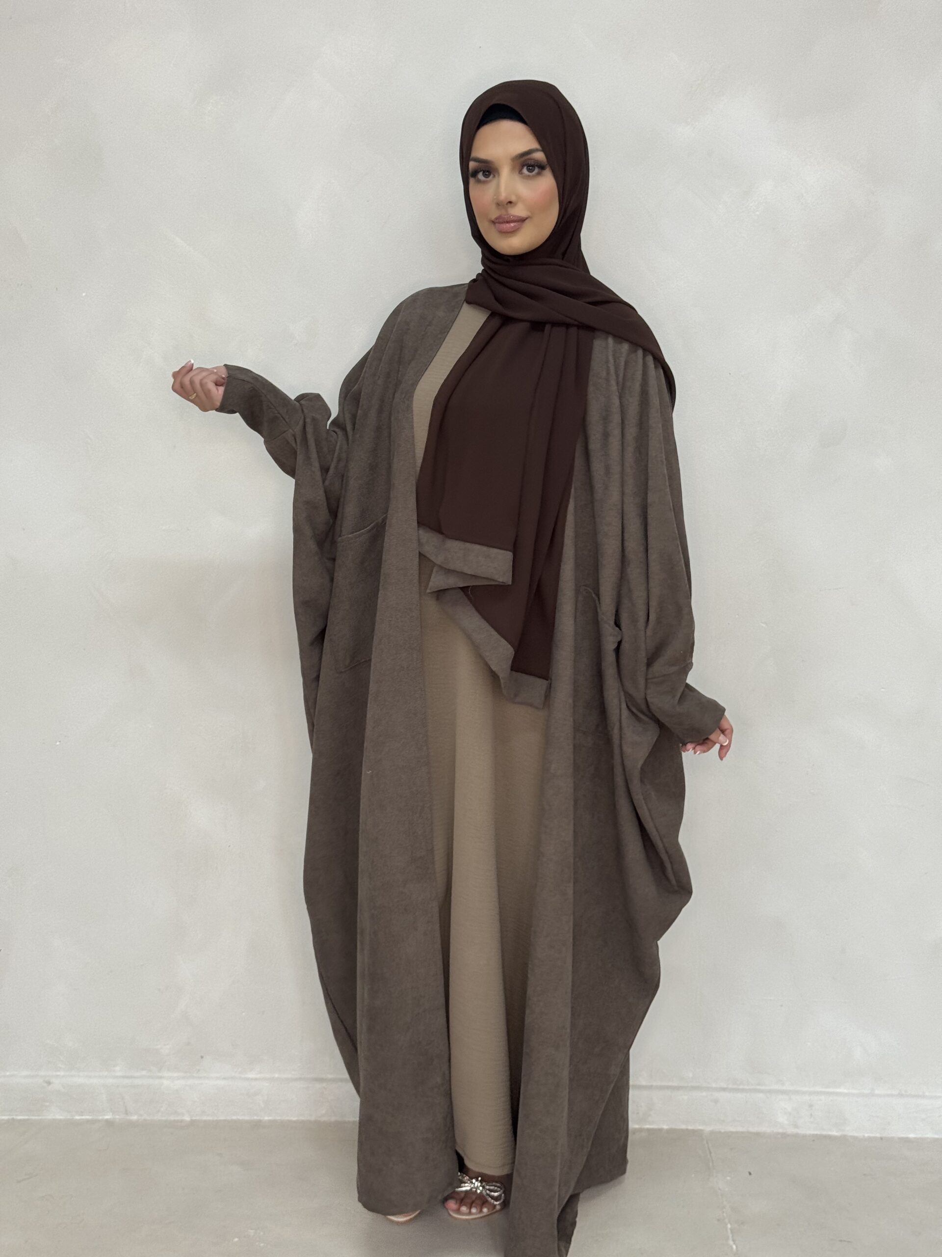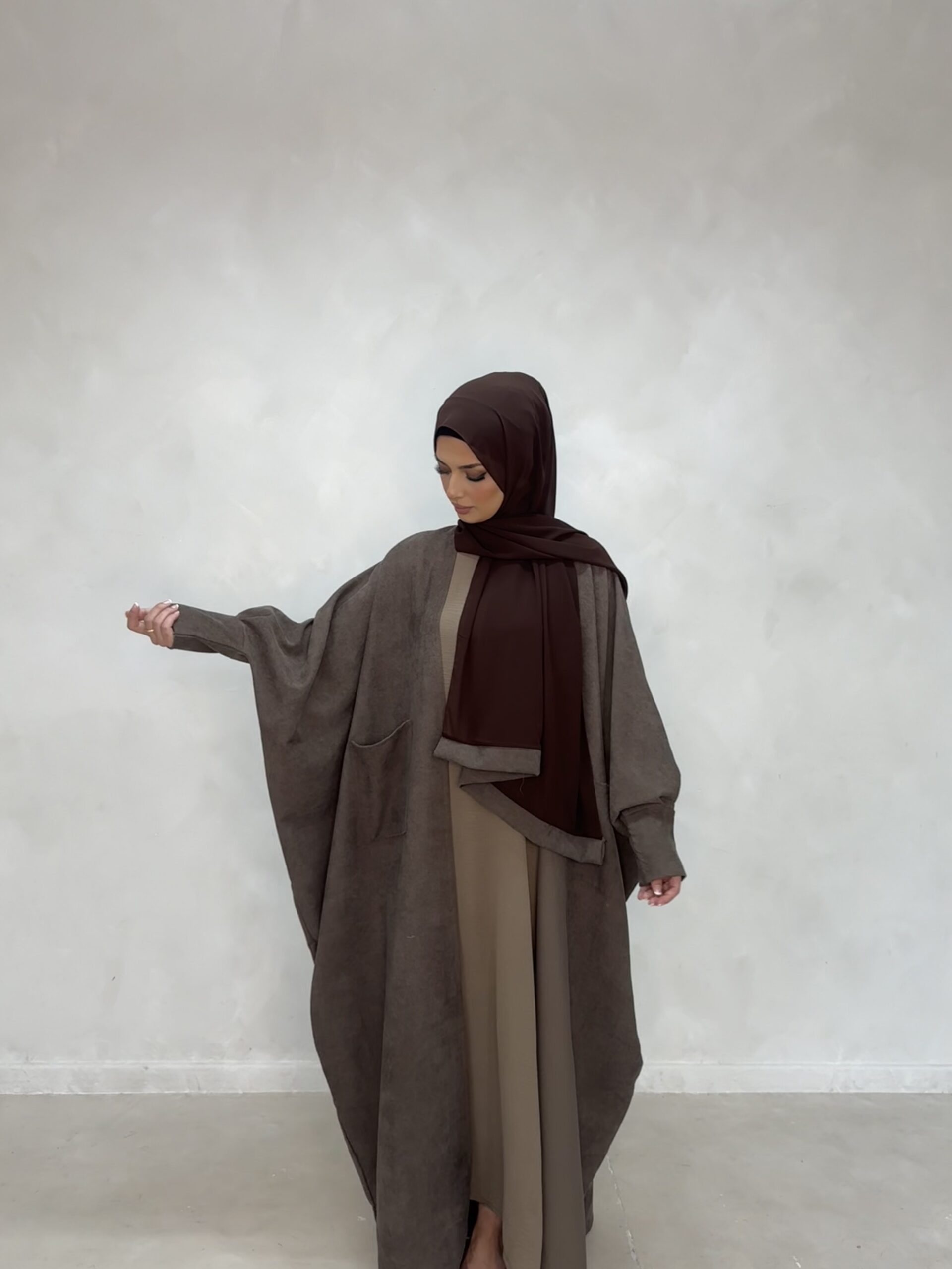 Embrace elegance and grace in our Hareem Abaya! This winter staple is designed to provide comfort during the cooler days. It features a soft beige inner slip and a chocolate brown hijab – ensuring you’re both stylish and comfortable.